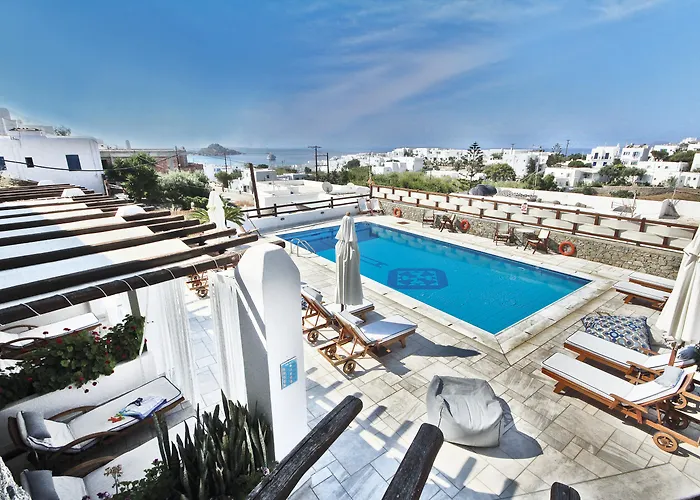 Platys Gialos center kan man nå inden for 5 minutters gang. Du kan komme til Lille Venedig om få minutter i bil. Det nærmeste busstoppested er Platys Gialos, inden for kun 650 meter.